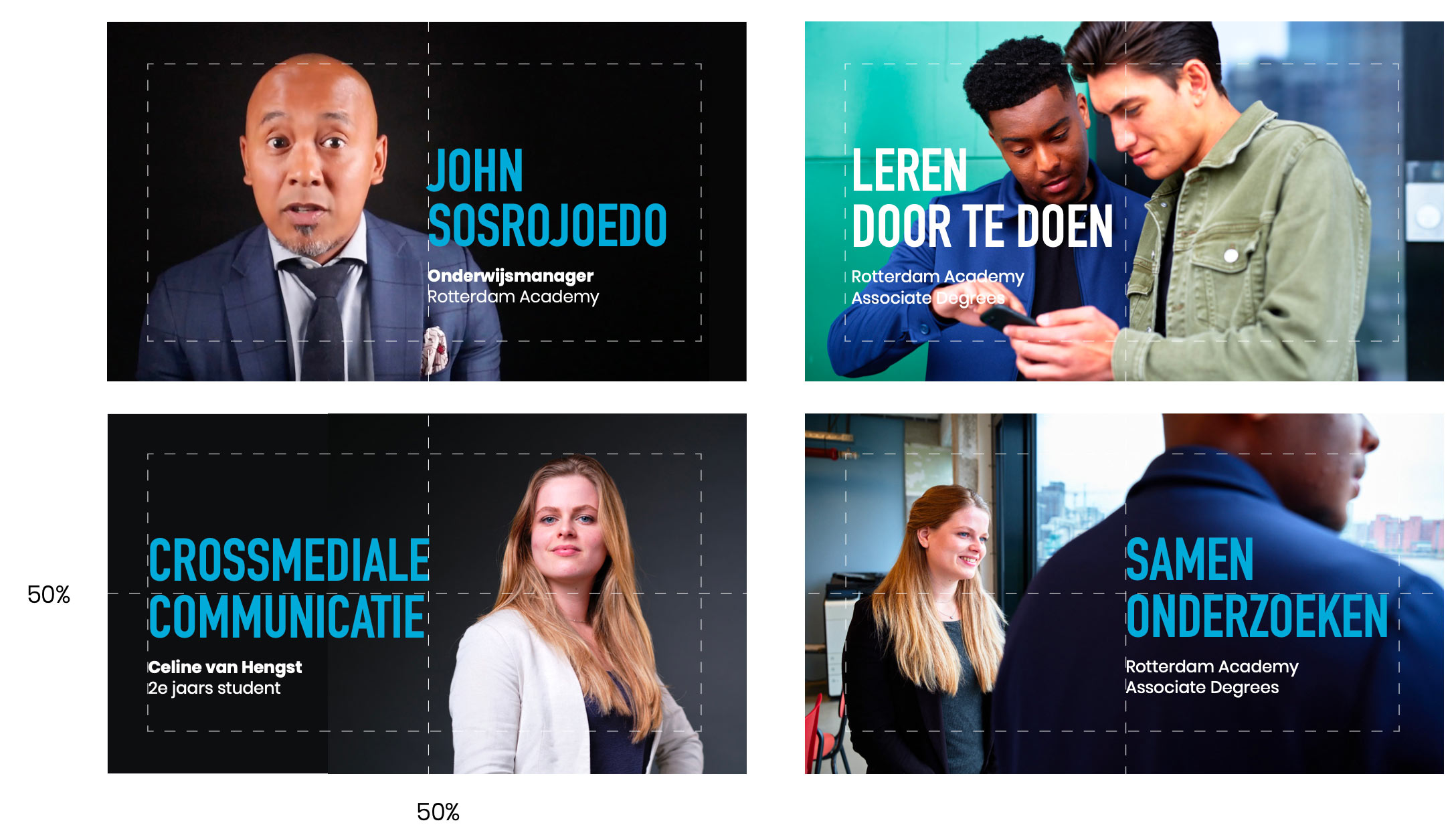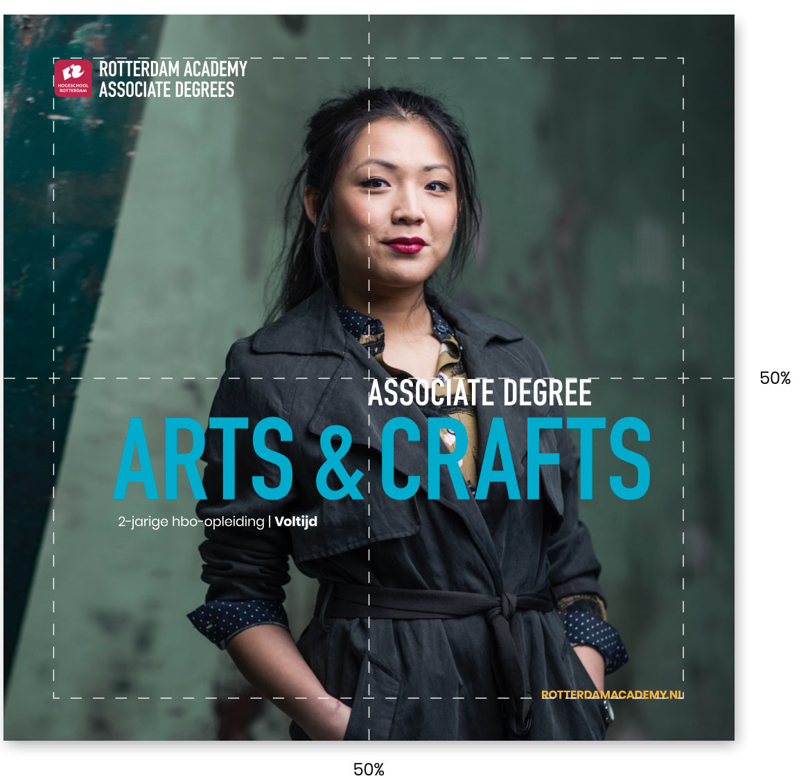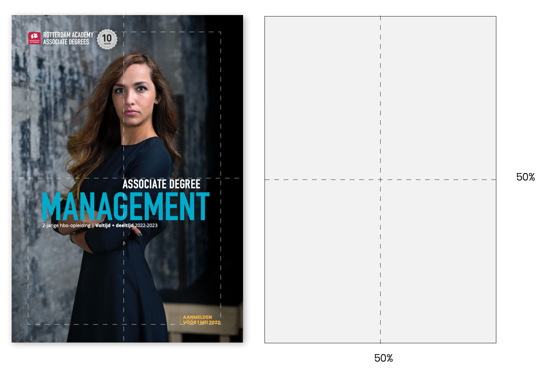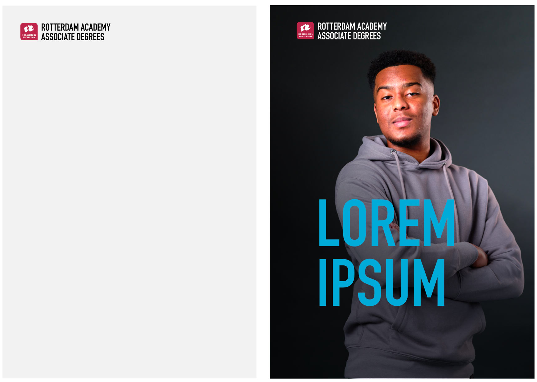 Bij het produceren van drukwerk voor de Rotterdam Academy moeten de regels van het design-systeem worden gerespecteerd met betrekking tot: