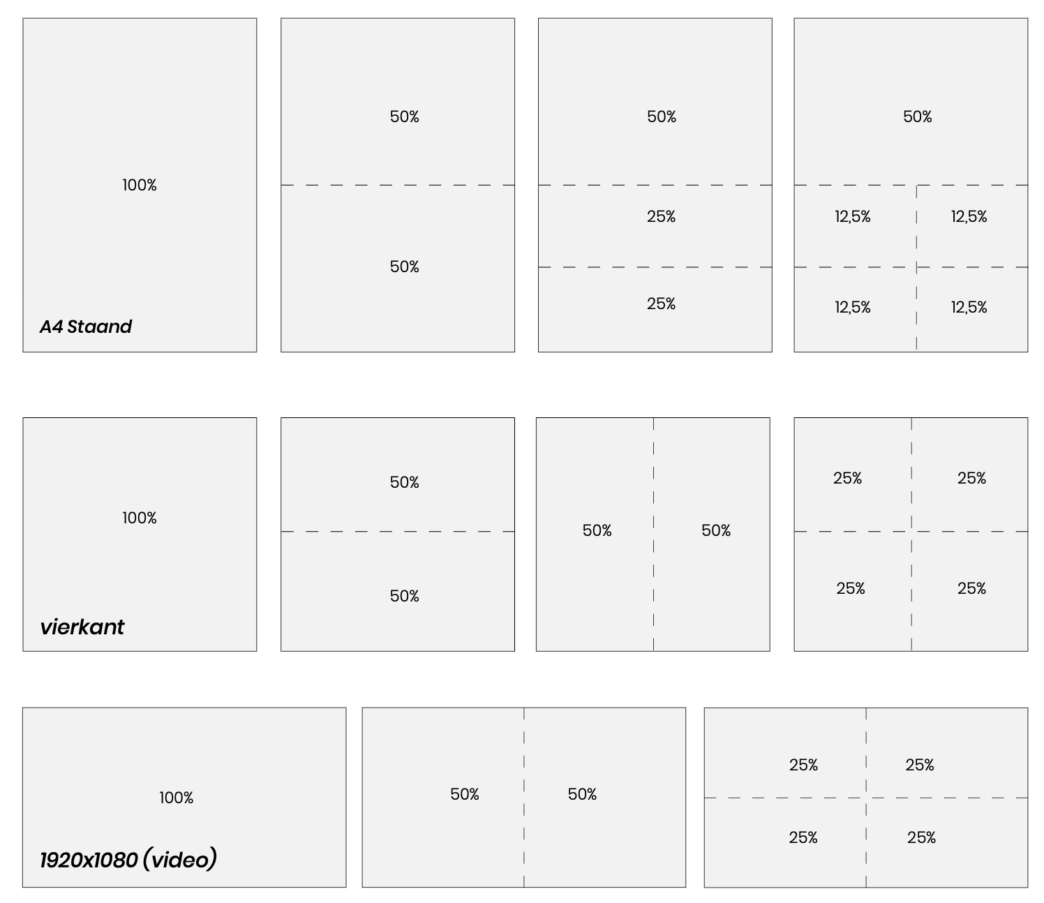 Het basisgrid gaat uit van vlakverdelingen die steeds worden gehalveerd. Hiermee kan een strak maar toch speels karakter worden gecreëerd.